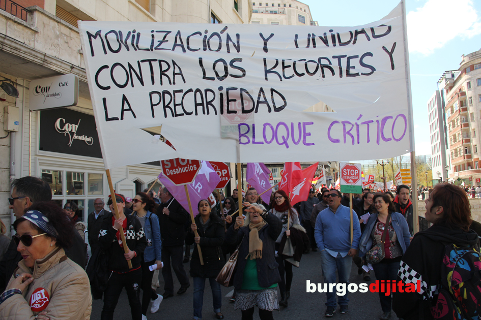 El 1º de Mayo llenó las calles de la ciudad de diversas actividades que al fin y al cabo con diferentes formas exigían la devolución de todos derechos de los trabajadores y un trabajo digno. Paseo del Espolón, con el lema “Conquistemos la dignidad en el trabajo”, en Plaza de Santo Domingo volvió a instalarse por la mañana el sindicato CNT con un interesante mercadillo de libros, las calles que arrancaban desde la Plaza del Cid hasta finalizar en la plaza Mayor, la manifestación convocada por los sindicatos CCOO y UGT, una bicicletada desde el paseo de Atapuerca hasta Fuentes Blancas organizada por el sindicato CGT con toda la tarde llena de actividades finalizando sobre las 22.30 h. con el concierto de Andrés Garrasparri.