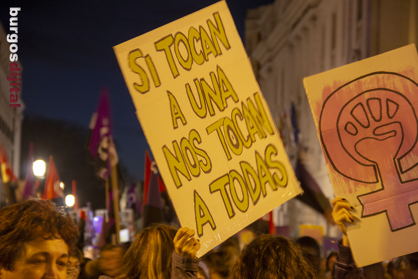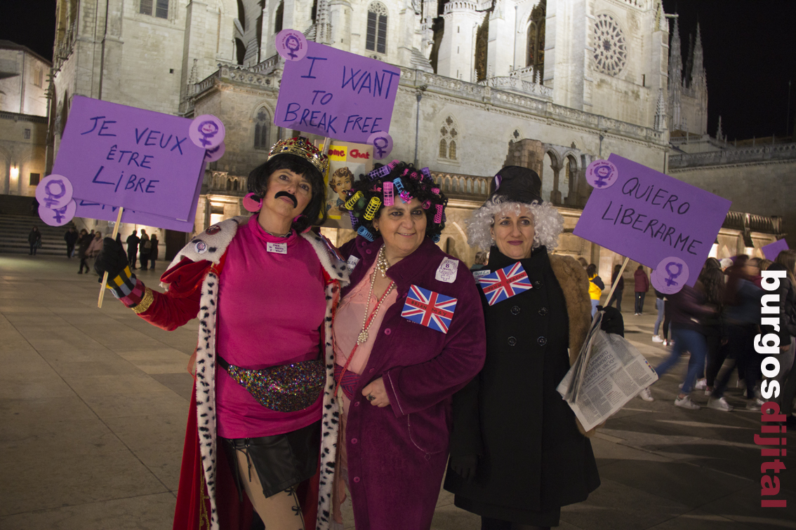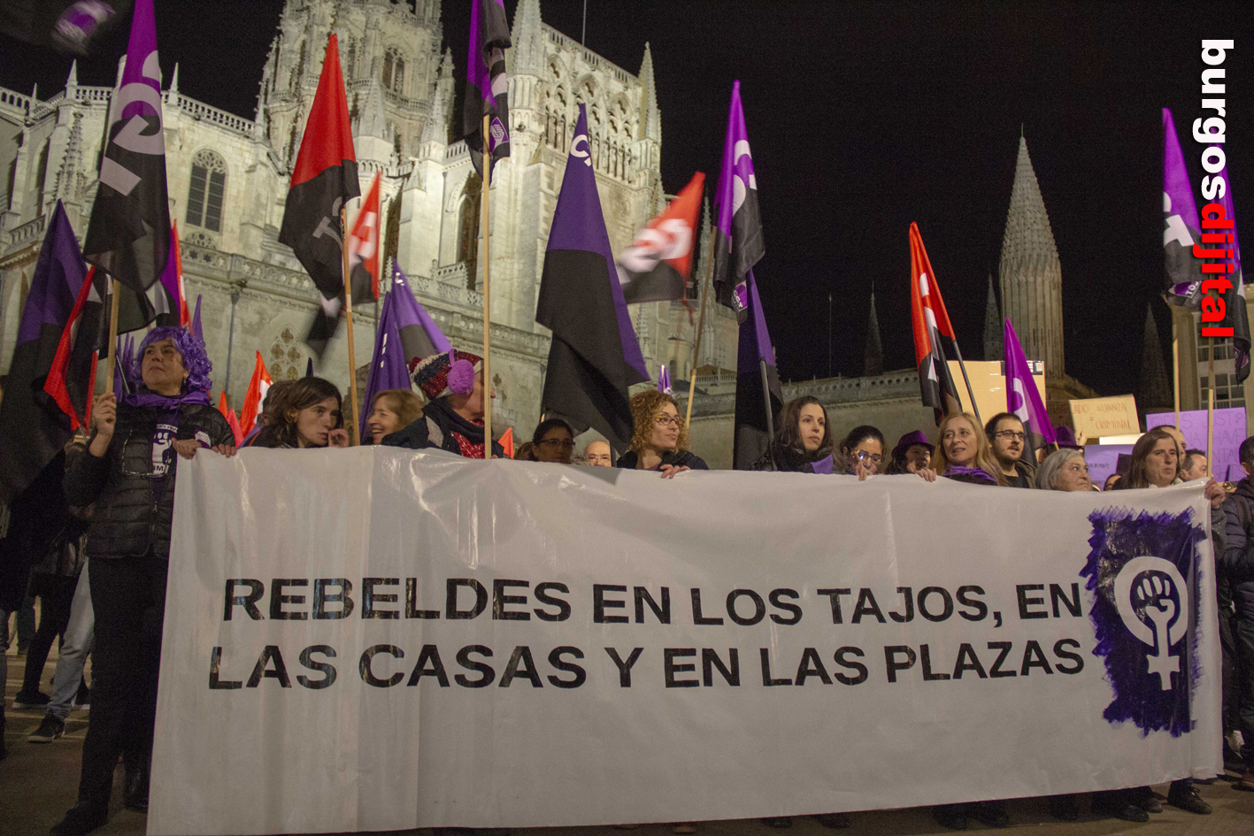 Trans, colectivo LGTBI, en un día de lucha por sus derechos, mujeres, han gritado, cantado y manifestado en voz alta para ser escuchadas por gobernantes y empresarios, universidad y escuelas, hombres y mujeres y sociedad en general que “Si nosotras paramos, se para el mundo” como rezaba la primera pancarta, seguidas de otra y otra y otra, “Mujeres libres”, “Más de mil motivos para la lucha feminista”, “Rebeldes en los tajos, en las casas y en las plazas”, no podía faltar el toque de Amnistía Internacional de Burgos ” No más violencia contra las mujeres”, y seguir leyendo ” Por todas las mujeres que no pudieron luchar”, acompasada toda la manifestación por las consignas y la batucada.