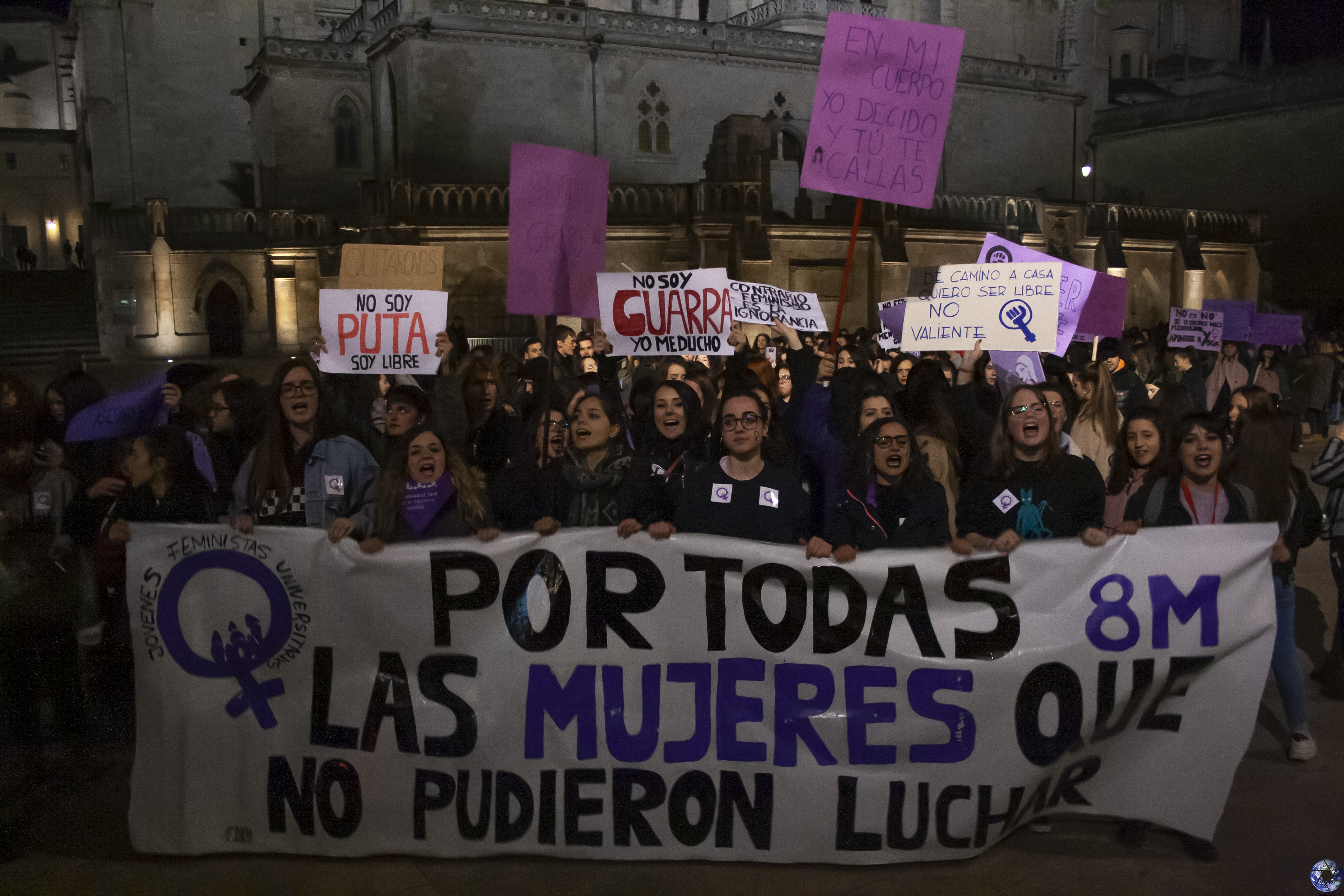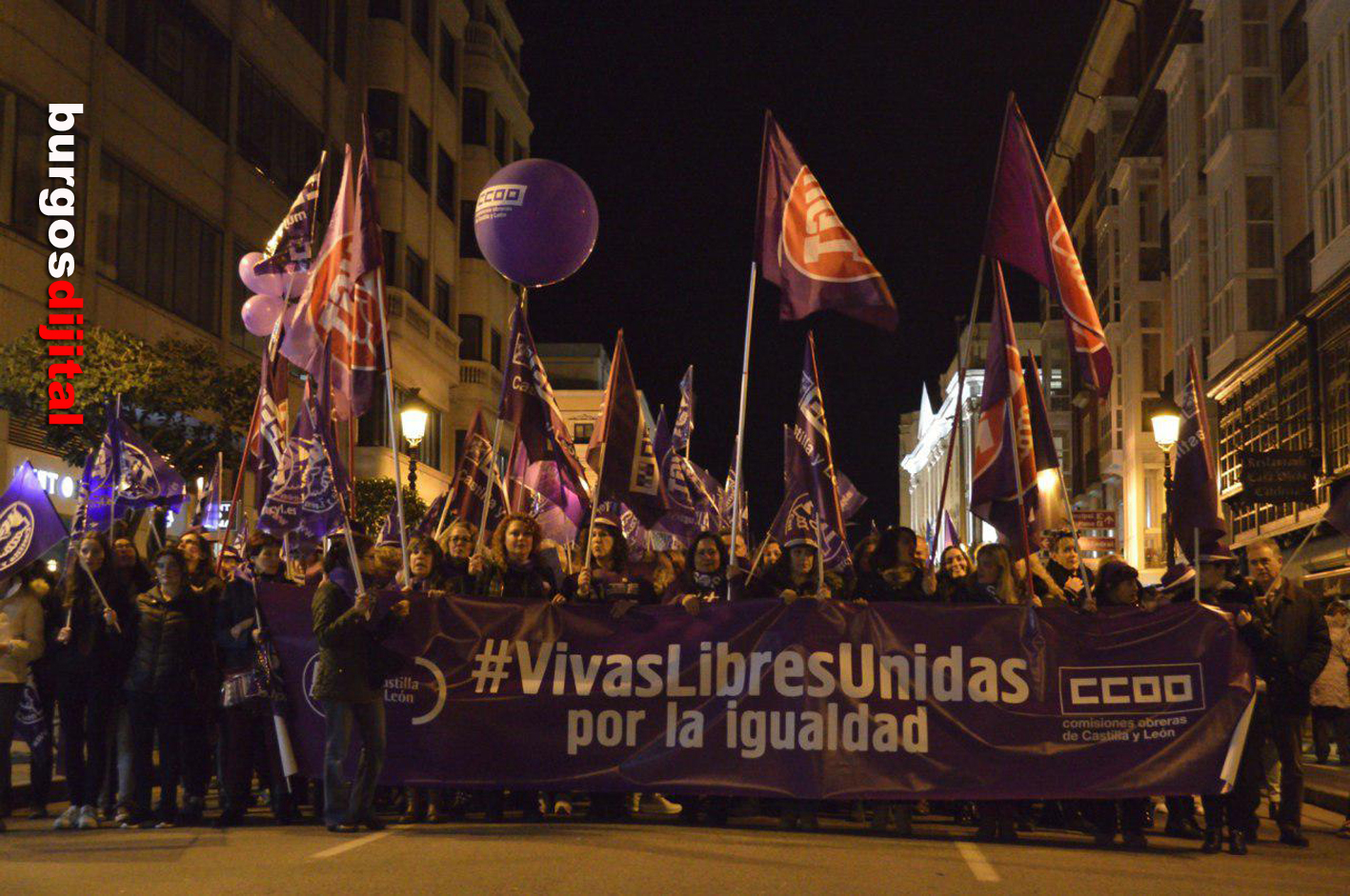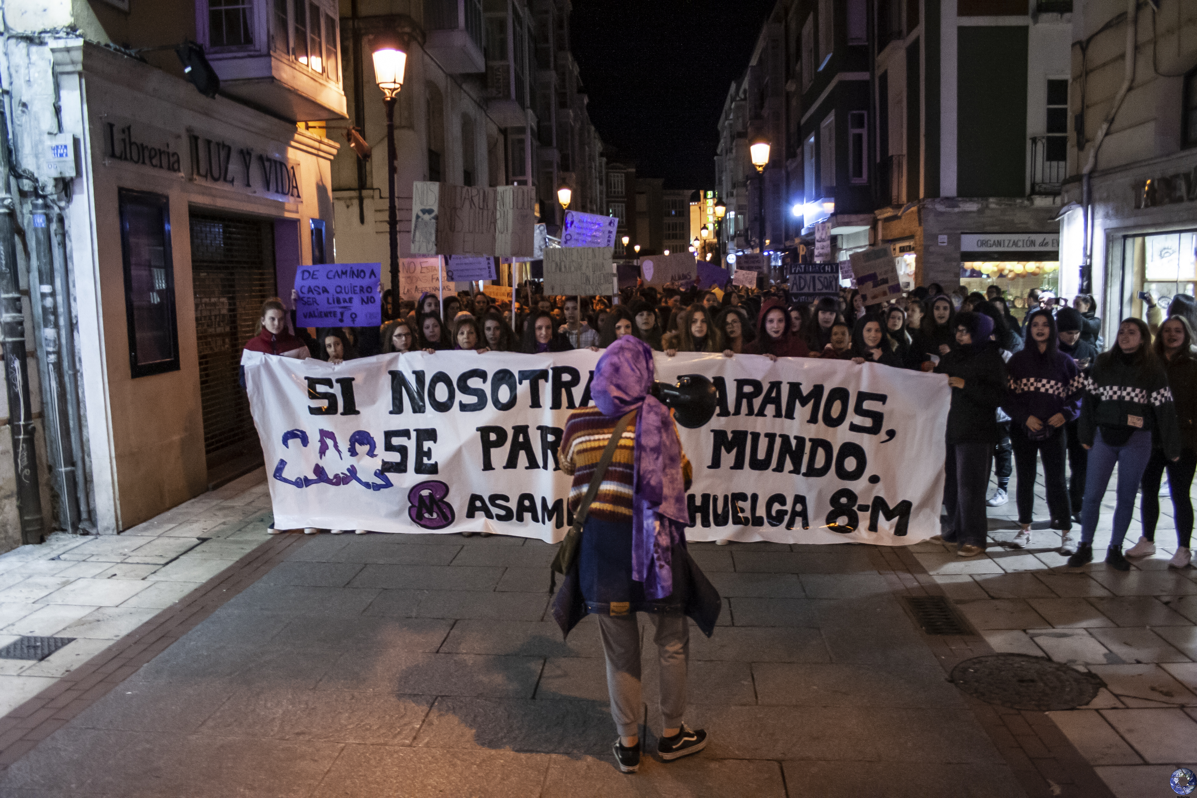 Trans, colectivo LGTBI, en un día de lucha por sus derechos, mujeres, han gritado, cantado y manifestado en voz alta para ser escuchadas por gobernantes y empresarios, universidad y escuelas, hombres y mujeres y sociedad en general que “Si nosotras paramos, se para el mundo” como rezaba la primera pancarta, seguidas de otra y otra y otra, “Mujeres libres”, “Más de mil motivos para la lucha feminista”, “Rebeldes en los tajos, en las casas y en las plazas”, no podía faltar el toque de Amnistía Internacional de Burgos ” No más violencia contra las mujeres”, y seguir leyendo ” Por todas las mujeres que no pudieron luchar”, acompasada toda la manifestación por las consignas y la batucada.