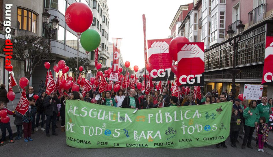 La Plataforma por la escuela pública, laica y gratuita junto a los sindicatos CGT, CCOO, STES y UGT y diversos colectivos de estudiantes volvían a llamar a la huelga hoy 9 de marzo en todo el Estado y también en nuestra ciudad.