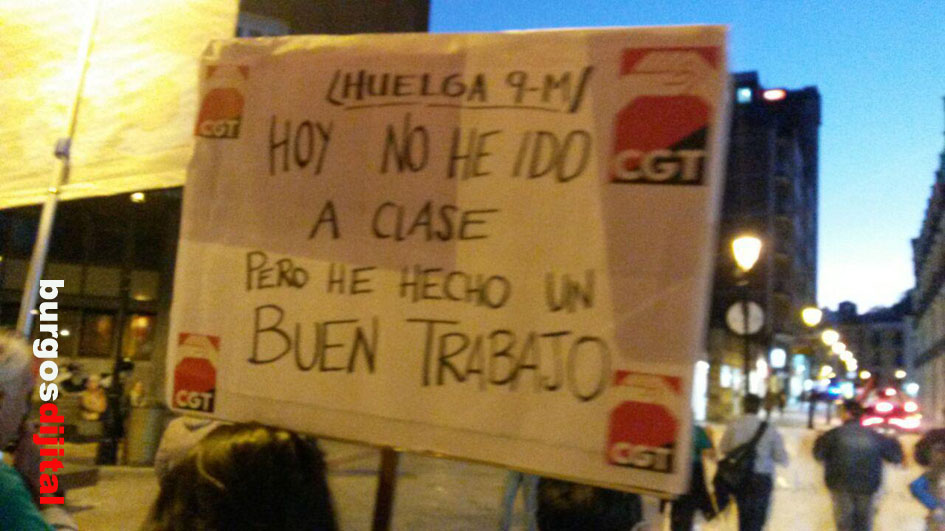Probablemente por el hecho de las energías gastadas y por el número de manifestaciones, concentraciones, huelgas y actos reivindicativos realizados hasta ahora, los docentes no hayan respondido a la convocatoria para parar el sistema como se esperaba. Sin embargo, el alumnado, junto a las familias, ha tomado el relevo y ha conseguido paralizar los institutos de secundaria y bachillerato, y ello a pesar de encontrarse con verdaderas trabas impuestas por docentes que pretendían boicotear el derecho a la huelga a través de exámenes programados para ese día o, como en el caso del “López de Mendoza”, donde se presionaba a los alumnos con la no justificación de su ausencia.