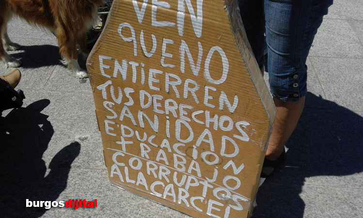La PAH Burgos también ha estado presente lamentando “la cobardía del presidente en funciones, que una vez más ha entrado y salido por la puerta de atrás, sin dar la cara”. Según la PAH Burgos, la concentración se convocaba con el fin de visibilizar las graves consecuencias que ha tenido su política de recortes sobre la ciudadanía y sus derechos fundamentales ,vivienda digna, sanidad, educación, empleo, servicios sociales, etc….